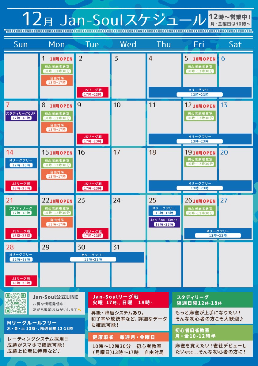 10:00~17:00 初心者麻雀教室&自由対局 3000円