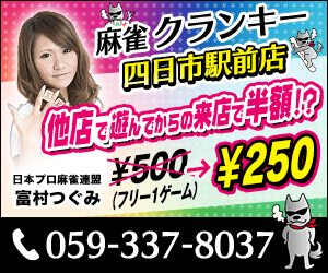 麻雀クランキー 四日市駅前店三重県 マージャンクランキー ヨッカイチエキマエテン 三重県 近鉄四日市駅 徒歩3分 四麻、フリー、セット 電話する059-337-8037 地図 店舗トップ ルール 写真/動画 イベント 求人 クーポン プロ イチオシ ランキング クチコミ 総合 麻雀クランキー 四日市駅前店 3.0 5 11 ? 点数について 11件 詳細 雀荘クチコミの点数概要 クチコミの点数は、総合点数を中心に、全部で11項目あります。 12項目は「雀荘の営業形態についての項目」と「その他の環境についての項目」の2つにわかれます。 総合スコア (計11項目) 営業形態点数 (6項目) 雀荘の営業形態についての点数 フリー セット 健康麻雀 麻雀教室 ノーレート 三麻 その他の環境点数 (5項目) 雀荘の設備、その他の環境についての点数 設備 接客 居心地 CP(コストパフォーマンス)・清潔感 ※麻雀王国雀荘検索のクチコミの点数は、当社独自の基準に基づく評価であり、雀荘の価値を何ら保証するものではあ りません。あくまでの一つの参考としてご活用ください。 雀荘クチコミ点数の算出方法要 クチコミの点数は、「ユーザー評価」に独自のアルゴリズムで掛け合わせて算出しております。 麻雀王国では、日々信頼性の高い点数を追及し、微調整を行っております。 ユーザー評価 個人が付けた点数 (雰囲気、感性、感覚、状況、主観など) フリー3.0 セット3.0 健康麻雀- 麻雀教室- ノーレート3.0 三麻- 設備 3.0 | 接客 3.0 | 居心地 3.0 | CP(コストパフォーマンス) 3.0 | 清潔感 3.0 フリー ¥500/般 セット ¥275/般 長期契約安心店舗 全国* 三重県4位 【三重県四日市市・近鉄四日市駅】麻雀クランキー 四日市駅前店は、四麻・フリー・セットが楽しめる雀荘です。 2026年1月より麻雀クランキー/KUROとして新たなスタート★近鉄四日市駅から徒歩3分★マーチャオジョーカー四日市店様から徒歩1分★4人打フリー&個室貸卓 ★近鉄四日市駅から徒歩3分 ★マーチャオジョーカー四日市店様から徒歩1分 ★4人打フリー&個室貸卓 ★無料専用駐車場8台 ★コインパーキング代サービス有 ★TEL: 059-337-8037 ★4人打フリー 1ゲーム500円➡250円 ①遊べば遊ぶほどゲーム代が安くなります!!最大半額に!! ②当日他店で遊んでからご来店頂く場合でも、ゲーム代が安くなります!! ★貸卓 20%OFFクーポン配布中!! ※個室は10%OFF ※ご予約の場合、朝9:00からご利用OK!! 続きを見る 閉じる お店のイチオシポイント イチオシ 1 新しくなった麻雀クランキー!! 近鉄四日市駅前で2番目に愛されるお店を目指し、2026年1月に麻雀クランキー/KUROとして新たなスタートを切りました!! ↓詳しくはブログをご覧ください https://ameblo.jp/mahjong-cranky/entry-12953660448.html イチオシ 2 最大半額になる割引システム!! ★4人打フリー 1ゲーム500円➡250円 ①遊べば遊ぶほどゲーム代が安くなります!! 最大半額に!! ②当日他店で遊んでからご来店頂く場合でも、 ゲーム代が安くなります!! ↓詳しくはブログをご覧ください https://ameblo.jp/mahjong-cranky/entry-12954483867.html イチオシ 3 貸卓がず~っと20%OFF!! 貸卓がず~っと20%OFFになるパスポート配布中!! ※個室は10%OFF お店のコトを友達に教える Facebook X(旧Twitter) Line Mail お店を評価する 閉店・休業・移転・情報違い報告 クチコミ投稿 報告内容詳細※必須 閉店 休業 移転 情報違い 送信する 最新情報 2026年1月26日(月) イベント 貸卓がず~っと20%OFF!! 貸卓がず~っと20%OFFになるパスポート配布中!! ※個室は10%OFF 「ネット予約」&「チェックイン」で 来店人数×100Gもらえる! ログイン ご予約情報入力 来店日※ 2013年12月31日(火) 卓数※ 12345678910卓 予定開始※ 1:00 2:00 3:00 4:00 5:00 6:00 7:00 8:00 9:00 10:00 11:00 12:00 13:00 14:00 15:00 16:00 17:00 18:00 19:00 20:00 21:00 22:00 23:00 24:00 予定終了※ 1:00 2:00 3:00 4:00 5:00 6:00 7:00 8:00 9:00 10:00 11:00 12:00 13:00 14:00 15:00 16:00 17:00 18:00 19:00 20:00 21:00 22:00 23:00 24:00 お名前※ 携帯TEL※ メール※ ルール※ 四麻 三麻 点数※ 25000点 30000点 赤枚数※ 赤5マン01234 赤5ピン01234 赤5ソー01234 その他 チップ 焼鳥 備考 予約する クチコミ 投稿する 麻雀クランキー 四日市駅前店 三重県 近鉄四日市駅 綺麗な店内で快適に打てました 2025/07/14 (2025/07訪問) ゲスト さんのクチコミ 総合 5.0 麻雀クランキー 四日市駅前店 三重県 近鉄四日市駅 店が綺麗、接客も良い。フリーも貸卓も料金が安い。フリーは多分日本でも有数なお得さ。 2024/04/05 (2024/04訪問) ゲスト さんのクチコミ 総合 5.0 麻雀クランキー 四日市駅前店 三重県 近鉄四日市駅 店内がとても綺麗で居心地もよく快適に利用させていただきましたスタッフも元気で明るく接しやすかったです 2020/01/07 (2020/01訪問) ゲスト さんのクチコミ 総合 5.0 お店独自のHP・ソーシャル X (旧twitter) 自社HP 自社Blog お店の情報詳細 店名 麻雀クランキー 四日市駅前店 住所 〒510-0086 [地図] 三重県四日市市諏訪栄町3-4 エルビル3F 電話 059-337-8037 交通手段 近鉄名古屋線 近鉄四日市駅 徒歩3分 近鉄湯の山線 近鉄四日市駅 263m JR関西本線(名古屋~亀山) 四日市駅 913m 近鉄四日市駅北口から東へ(右手方向)250mの