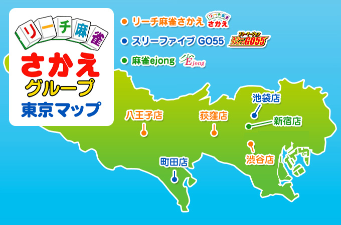 Tokushuses Genre:さかえグループ東京特集 都道府県で検索 東京都(4) 東京都 注目 リーチ麻雀 さかえ 渋谷店 セット、フリー、四麻、三麻 セット 渋谷駅から徒歩1分♪♪ 全国チェーンのさかえグループ直営店です🀄️✨ 【気軽に遊べる料金設定】 ⭐️月~木⭐️ 1時間1,200円(税込) 1時間1,600円(税込)☕️フリードリンク有り ⭐️金~日・祝⭐️ 1時間1,600円(税込) 1時間2,000円(税込)☕️フリードリンク有り ※ソフトドリンクはお持ち込み可能です👌 皆様のご来店、心よりお待ちしております😊 イチオシ 1 モーニングパックで毎朝お得に麻雀できる🀄☕ 注目 リーチ麻雀 さかえ 荻窪店 JR中央線(快速) 荻窪駅 徒歩1分 四麻、フリー、セット セット ¥525/般 安心・安全の全国チェーン「さかえグループ」のお店です♪ イチオシ 1 安心・安全のさかえグループ 注目 町田さかえ JR横浜線 町田駅 徒歩3分 セット、三麻、フリー、四麻 フリー ¥500/般 セット ¥300/般 ¥150/学 町田駅から徒歩5分♪♪ 全国チェーンのさかえグループ直営店です🀄️✨ 全国初!!フリーズ!?倍ゾーン!? 最新の全自動麻雀卓を含む14卓設置。 広々とした空間で ゆったりと麻雀をお楽しみいただけます🌺🌿 【加熱式タバコのみ喫煙OK】 ⭐️セット料金⭐️ ≪平日≫ 1卓1時間:1,200円(税込) 学生は1卓1時間:600円(税込) ≪土日祝≫ 1卓1時間:1,400円(税込) 学生は1卓1時間:1,000円(税込) 🍪お菓子付き 🔹ドリンク1杯無料サービス付き (おかわりは1杯50円♪) 🔹ソフトドリンクとお菓子は持ち込みも可能です👌 🔹4時間以上のご利用でフードサービスもあり🍽️ 落ち着いた高級感のあるお店で、丁寧な接客を心掛けています💫 皆様のご来店、心よりお待ちしております😊 イチオシ 1 ドリンクメニュー☕️ 注目 リーチ麻雀 さかえ 八王子店 JR横浜線 八王子駅 徒歩3分 セット、フリー セット ¥300/般 ¥125/学 安心・安全の全国チェーン「さかえグループ」のお店です♪ イチオシ 1 安心・安全のさかえグループのお店です その他の特集 一覧 Wi-fiのあるお店 フリー学割特集【一般エリア】 フリー学割特集【首都圏エリア】 麻雀の頂特集 関西4人麻雀特集 赤ドラ牌に印(ポッチ)あり特集 さかえグループ北海道特集 TOKYOノーレート&健康マージャン特集 KMU特集 大型店舗・貸切大会特集 ノーレート麻雀特集 接待用店舗特集 健康麻雀特集 禁煙店特集 NMnet特集