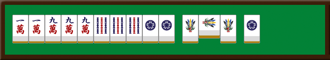 清老頭(チンロウトウ) 清老頭(チンロウトウ)とは? アタマもメンツもすべて数牌の1・9牌(老頭牌という)だけでそろえます。 メンツはすべて刻子(※1)、槓子(※2)になります。 ポン、カン(ミンカン)をしてもOK。 待ちの形はシャンポン待ち(※3)か、単騎待ち(※4)になります。 ※1 刻子:同じ牌が3牌の組み合わせ。※2 槓子:同じ牌が4枚の組み合わせ。※3 シャンポン待ち:同じ牌2枚ずつの対子で待つテンパイの形。※4 単騎待ち:アタマ待ちのこと。 ココがポイント! 1・9敗は6種類しかないので、ほとんどの場合、トイトイと同じようにポンやカンでメンツをそろえる。 麻雀役 メニュー 1翻役 翻牌(ファンパイ) 立直(リーチ) 門前清自獏和(メンゼンツモ) 平和(ピンフ) 断ヤオ九(タンヤオ) 海底摸月(ハイテイツモ) 河底撈魚(ホウテイロン) 嶺上開花(リンシャンカイホー) 搶槓(チャンカン) 一盃口(イーペイコー) 2翻役 対々和(トイトイホー) 混老頭(ホンロウトウ) 三暗刻(サンアンコー) 三色同刻(サンショクドウコー) 三色同順(サンショクドウジュン) 小三元(ショウサンゲン) 一気通貫(イッキツーカン) 三槓子(サンカンツ) ダブルリーチ 混全帯ヤオ九(チャンタ) 七対子(チートイツ) 3翻役 混一色(ホンイツ) 純全帯ヤオ九(ジュンチャン) 二盃口(リャンペーコー) 6翻役 清一色(チンイツ) 役満 天和(テンホー) 地和(チーホー) 大三元(ダイサンゲン) 四喜和(スーシーホー) 字一色(ツーイーソー) 緑一色(リューイーソー) 清老頭(チンロウトウ) 四暗刻(スーアンコー) 国士無双(コクシムソウ) 九蓮宝燈(チューレンポートウ) 四槓子(スーカンツ)