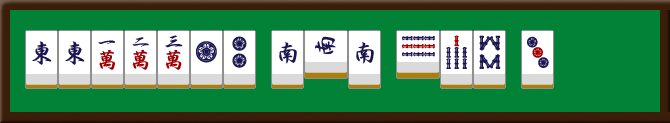 - 食い下がり1翻役になるので、つくるのに大変な割には安い手となってしまいます。ドラや翻牌が複数あれば、ポン、チー、カン(ミンカン)してもよいでしょう。