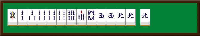 混一色(ホンイツ) 混一色(ホンイツ)とは? アタマもメンツも、字牌と、1種類だけの数牌でそろえるアガリ役です。 メンツの組み合わせは、順子(※1)でも刻子(※2)でも 槓子でもOKです。 字牌は何種類使ってもかまいません。 ポン、チー、カン(ミンカン)してもOKですが、その場合は1翻下がります。 待ちの形は何でもOK。 ※1 順子:数字が連続している3枚の同一種類の数牌。※2 刻子:同じ牌が3枚の組み合わせ。 ココがポイント! 字牌をポンしたり、使わない数牌ばかりを捨てることになるので、比較的、バレやすいアガリ役です。なるべくメンゼン(※1)でアガリを狙いましょう。 同じ種類の数牌が多くなると、アガリ牌も多くなります。アガリ牌を見落とすとフリテンになる場合もあるので、しっかり確認しましょう。 ※1 メンゼン:ほかの人が捨てた牌をもらわずに、自分のツモだけでアガリに向かっていくこと。 麻雀役 メニュー 1翻役 翻牌(ファンパイ) 立直(リーチ) 門前清自獏和(メンゼンツモ) 平和(ピンフ) 断ヤオ九(タンヤオ) 海底摸月(ハイテイツモ) 河底撈魚(ホウテイロン) 嶺上開花(リンシャンカイホー) 搶槓(チャンカン) 一盃口(イーペイコー) 2翻役 対々和(トイトイホー) 混老頭(ホンロウトウ) 三暗刻(サンアンコー) 三色同刻(サンショクドウコー) 三色同順(サンショクドウジュン) 小三元(ショウサンゲン) 一気通貫(イッキツーカン) 三槓子(サンカンツ) ダブルリーチ 混全帯ヤオ九(チャンタ) 七対子(チートイツ) 3翻役 混一色(ホンイツ) 純全帯ヤオ九(ジュンチャン) 二盃口(リャンペーコー) 6翻役 清一色(チンイツ) 役満 天和(テンホー) 地和(チーホー) 大三元(ダイサンゲン) 四喜和(スーシーホー) 字一色(ツーイーソー) 緑一色(リューイーソー) 清老頭(チンロウトウ) 四暗刻(スーアンコー) 国士無双(コクシムソウ) 九蓮宝燈(チューレンポートウ) 四槓子(スーカンツ)